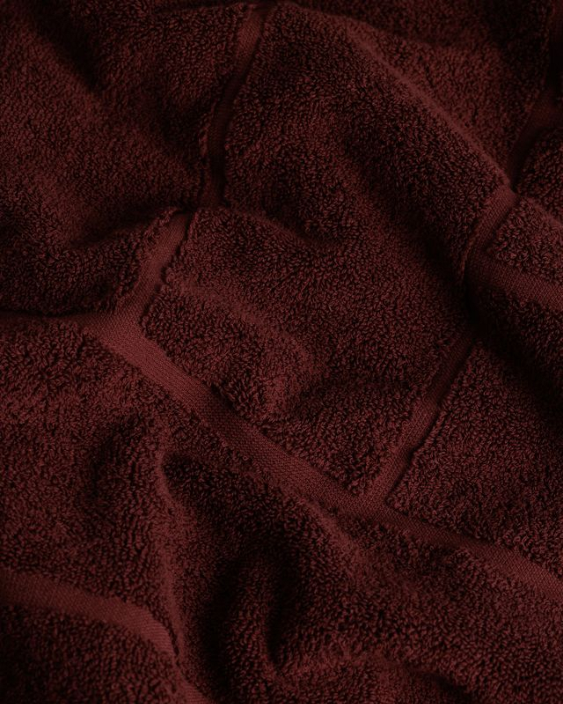 100% Organic Cotton bath towel with a luxuriously soft handle. Featuring a jacquard gate motif, the Greenwich displays a simple symmetry. In a rich shade of Rhus, it adds warmth to the bathing space.