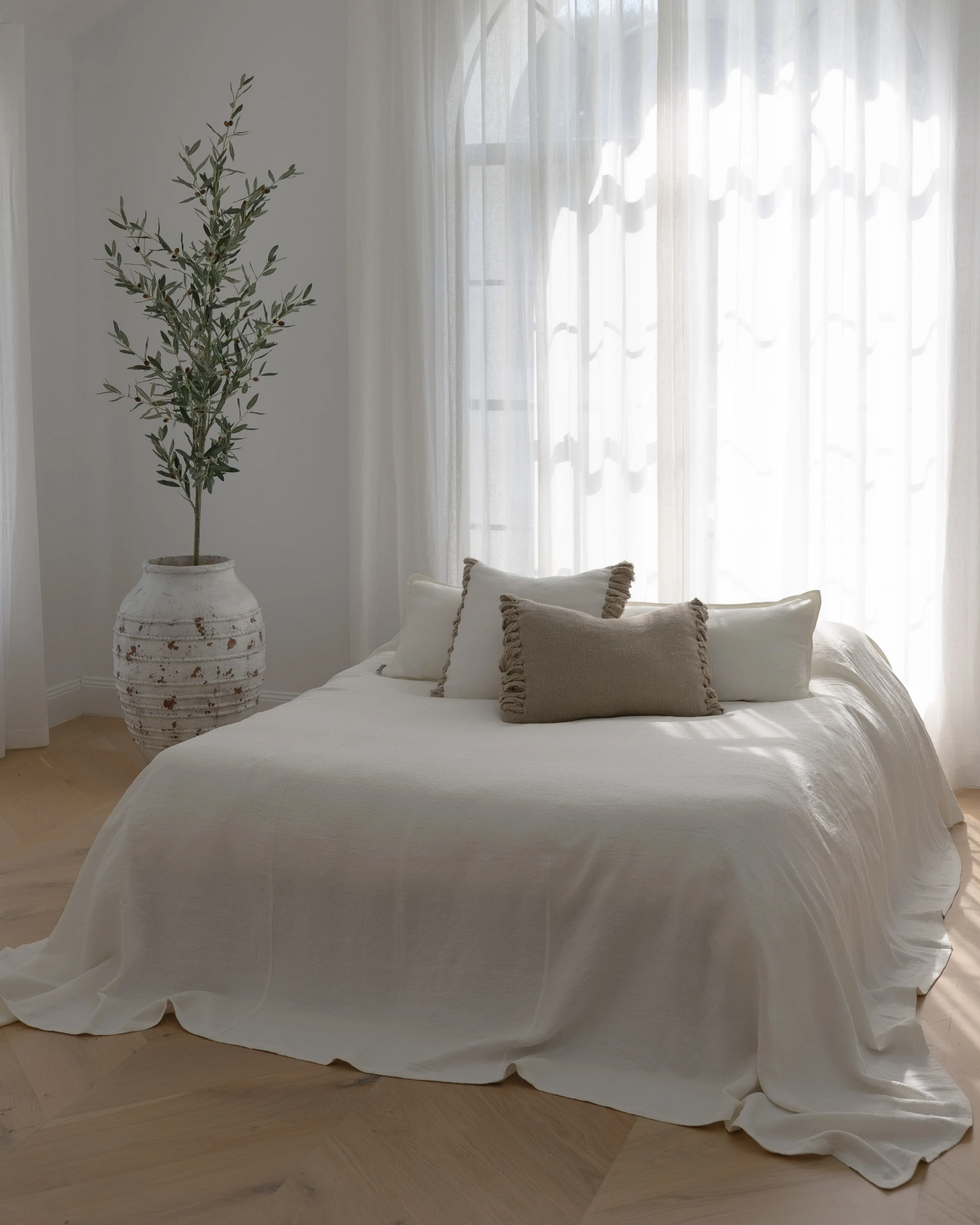 Bring a sense of calm and understated elegance to your bedroom with the Luca Linen Bed Cover in Off White. Crafted from 100% pre-washed European linen, it offers a beautifully soft and luxurious feel that only improves with time.