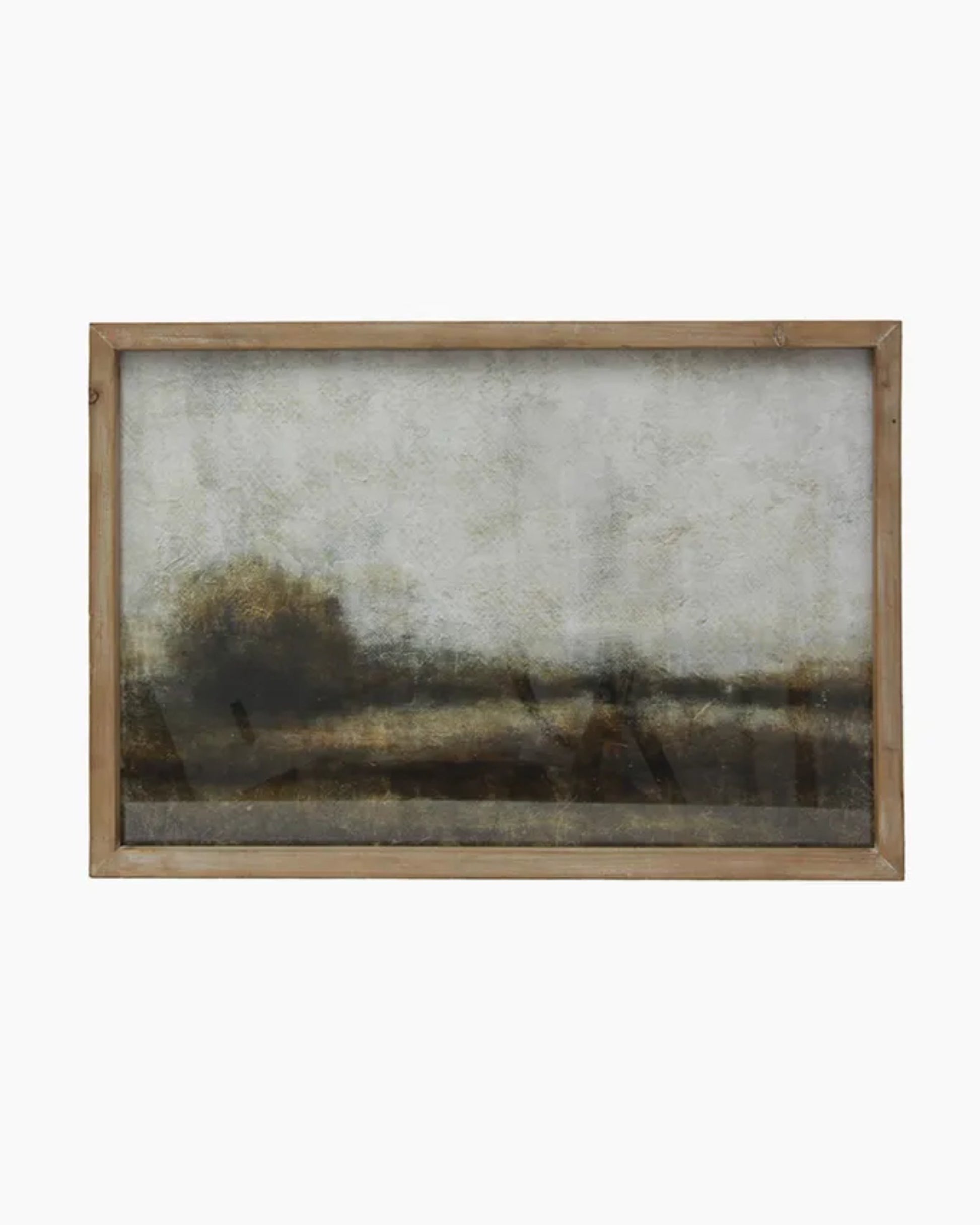 This stunning art print captures the serene beauty of an early morning landscape, where soft fog blankets the rolling hills and a gentle light breaks through the haze. The subtle colour palette evokes a sense of tranquility and calm, making it the perfect addition to any space seeking a peaceful, nature-inspired atmosphere.
