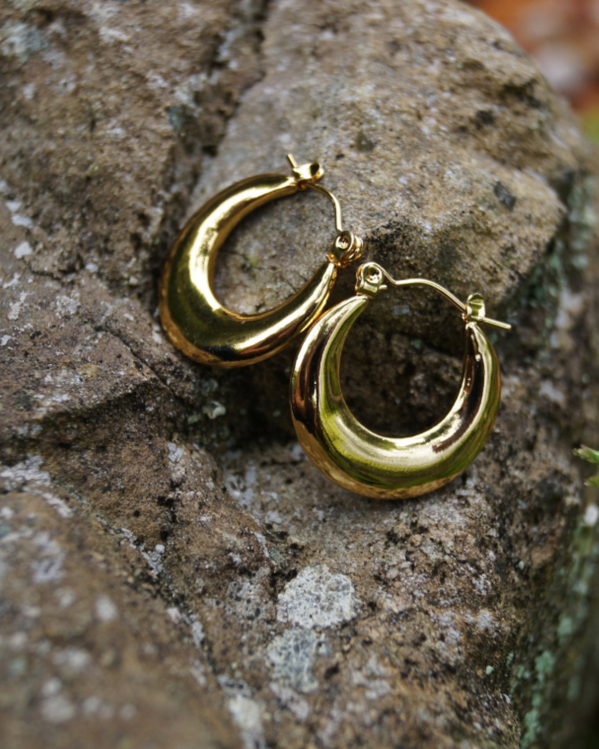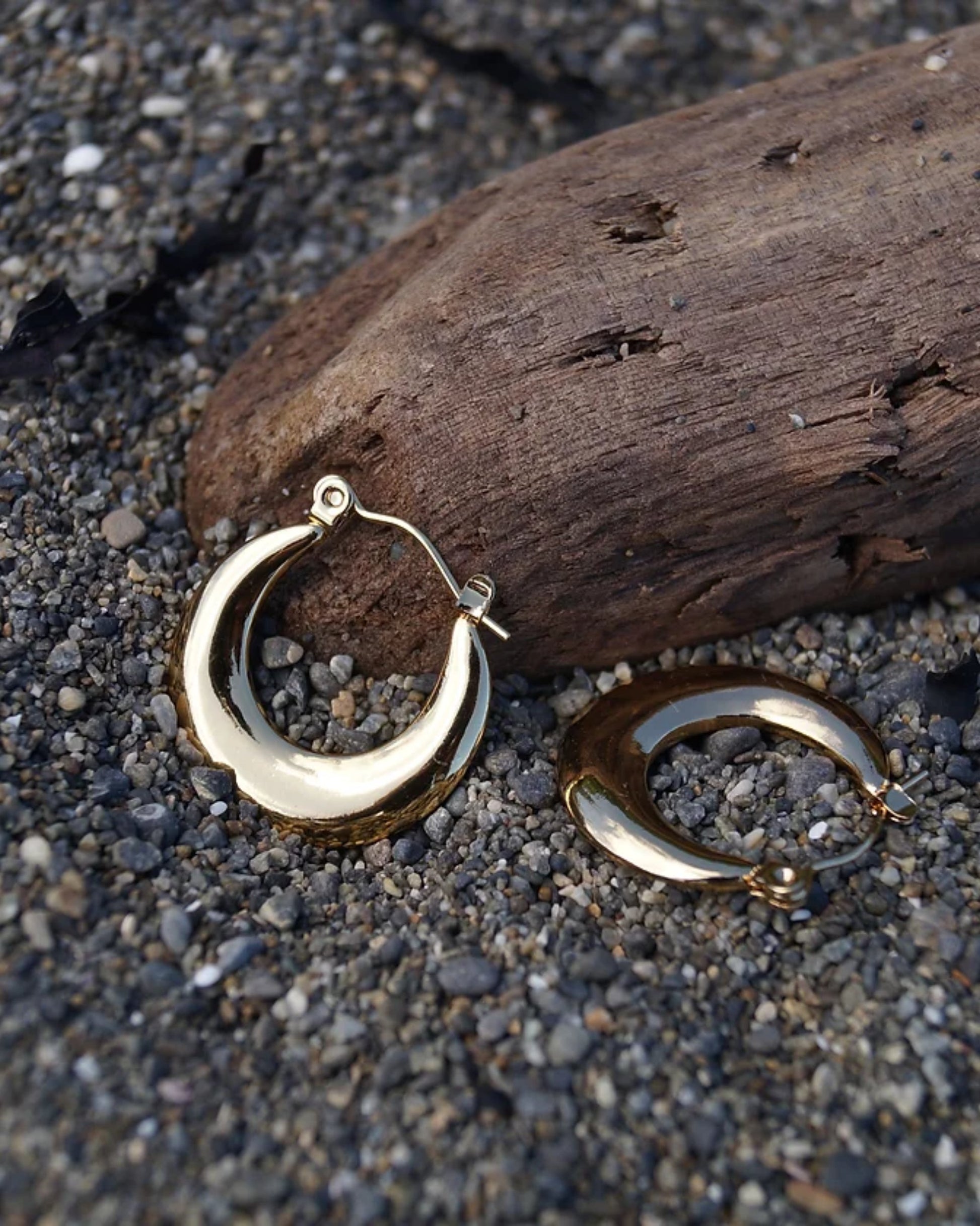 Introducing our stunning Noah hoops, the perfect addition to your earring collection. These gorgeous 18k gold plated earrings are both classic and contemporary, making them a versatile choice for any outfit or occasion.