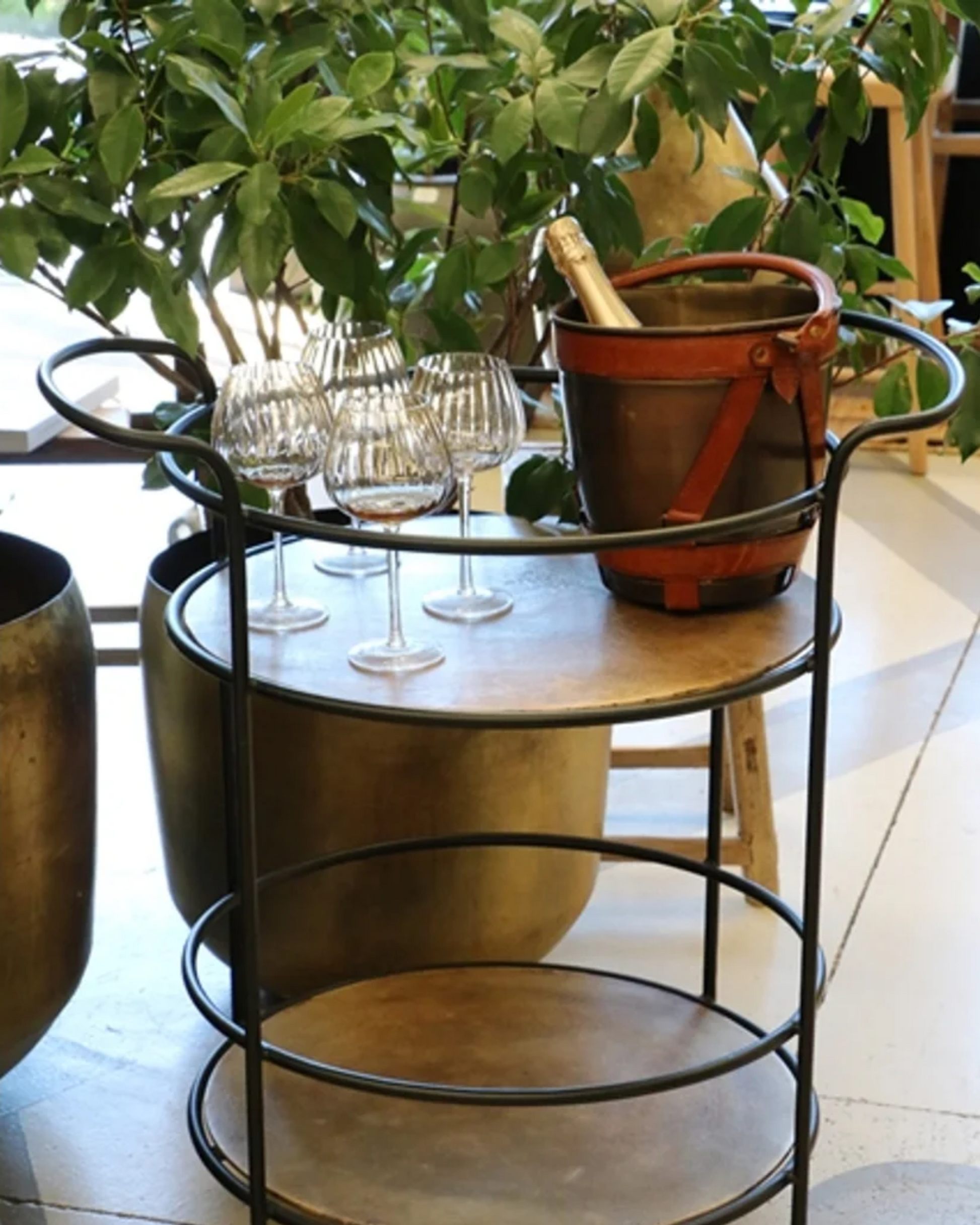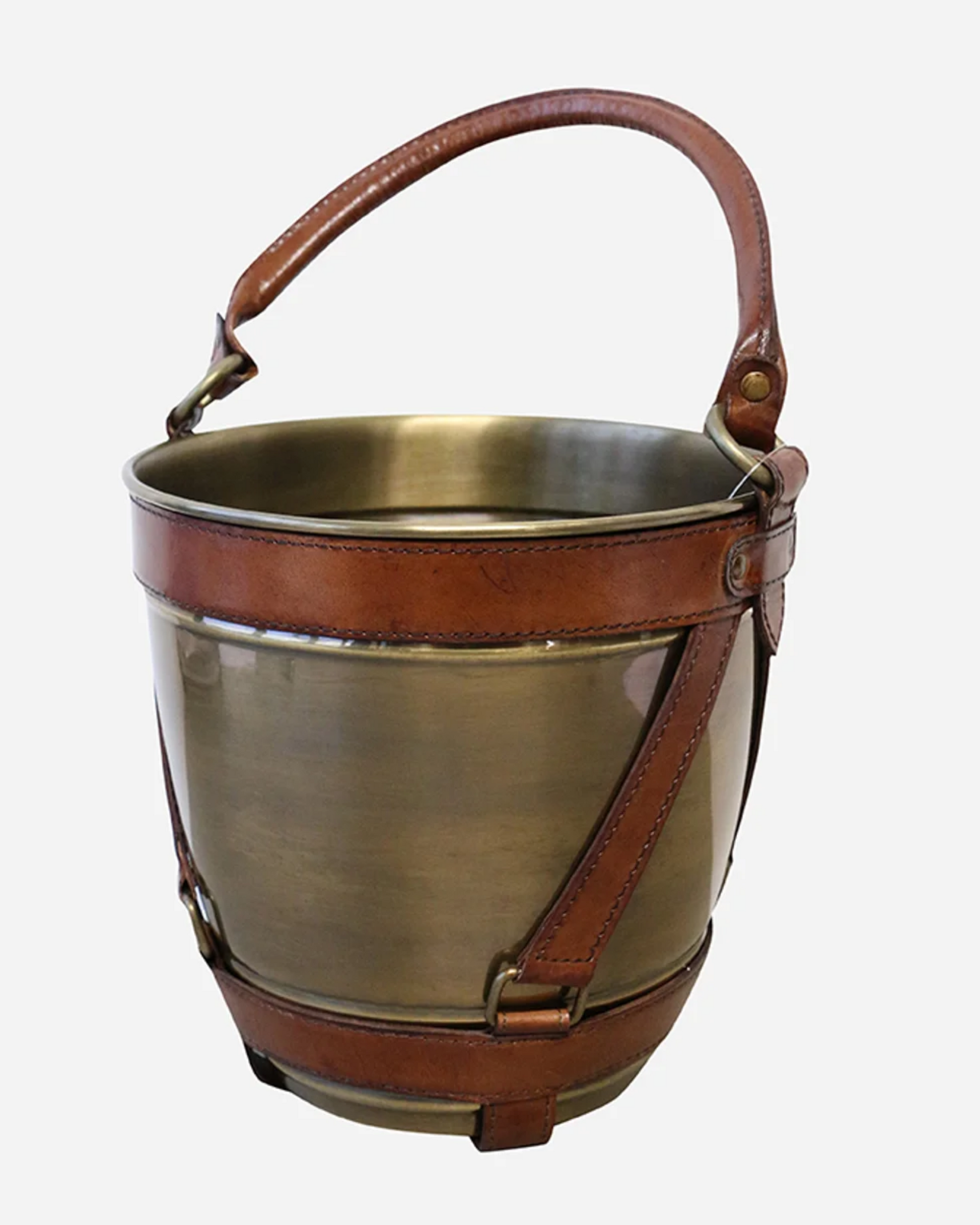 RIVIERA BRASS WINE COOLER WITH LEATHER HANDLES