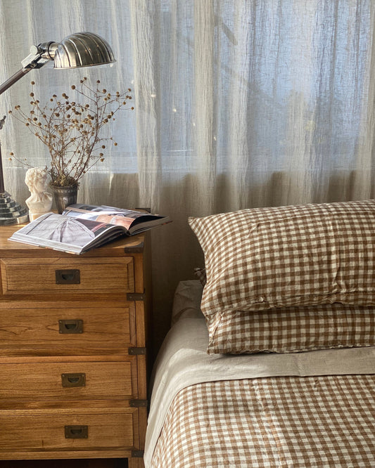 Le Lin Chocolate Gingham Standard Pillow Cases