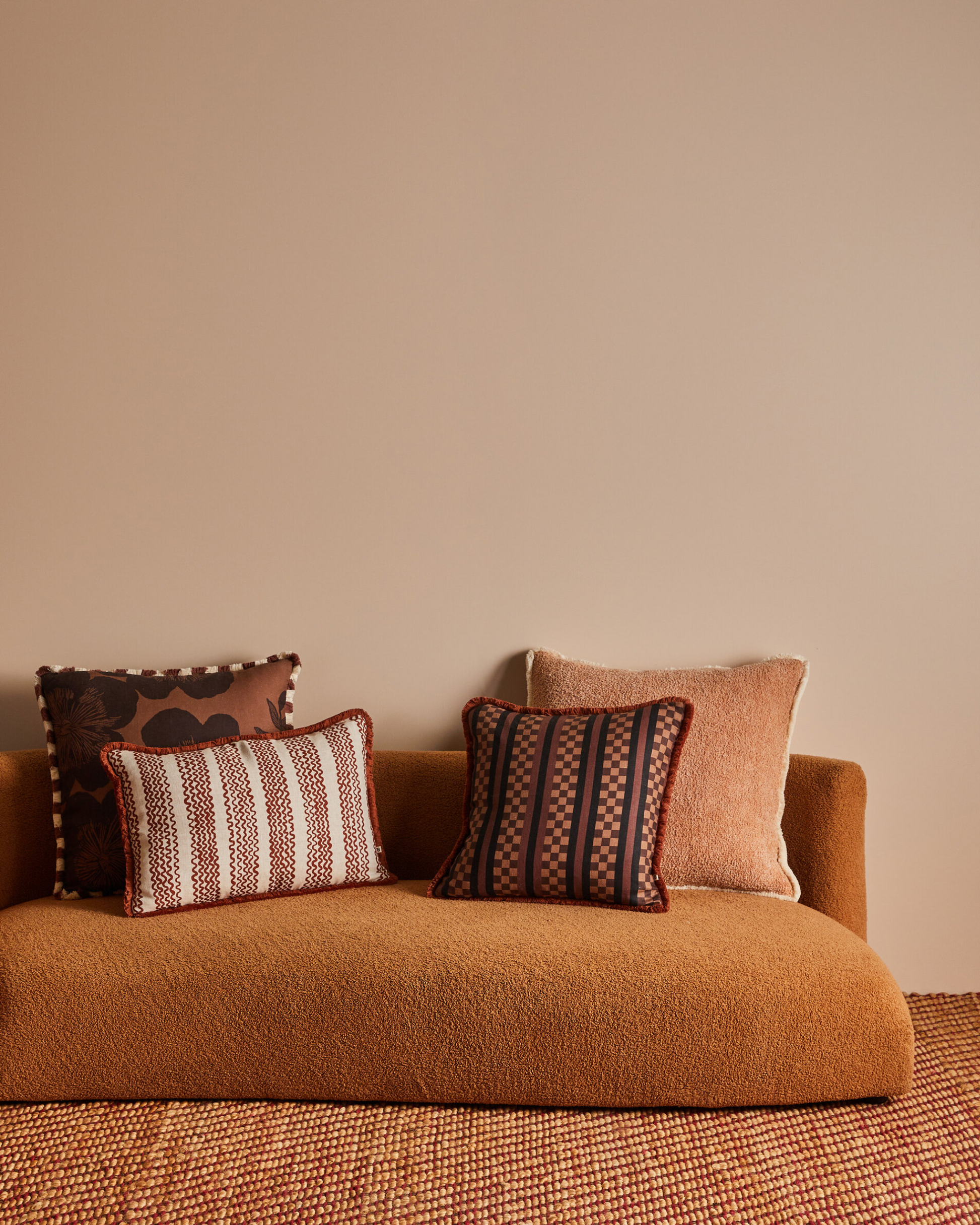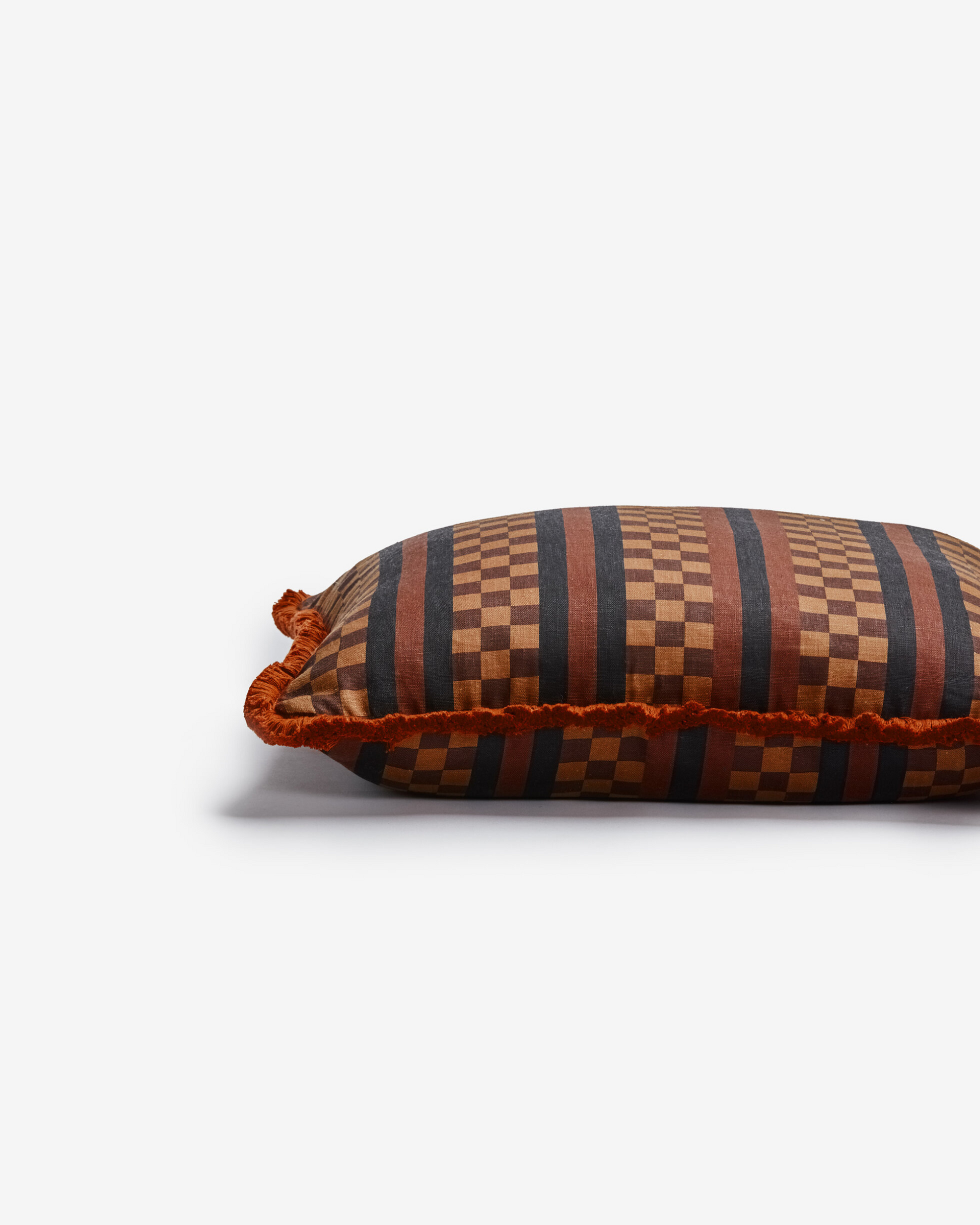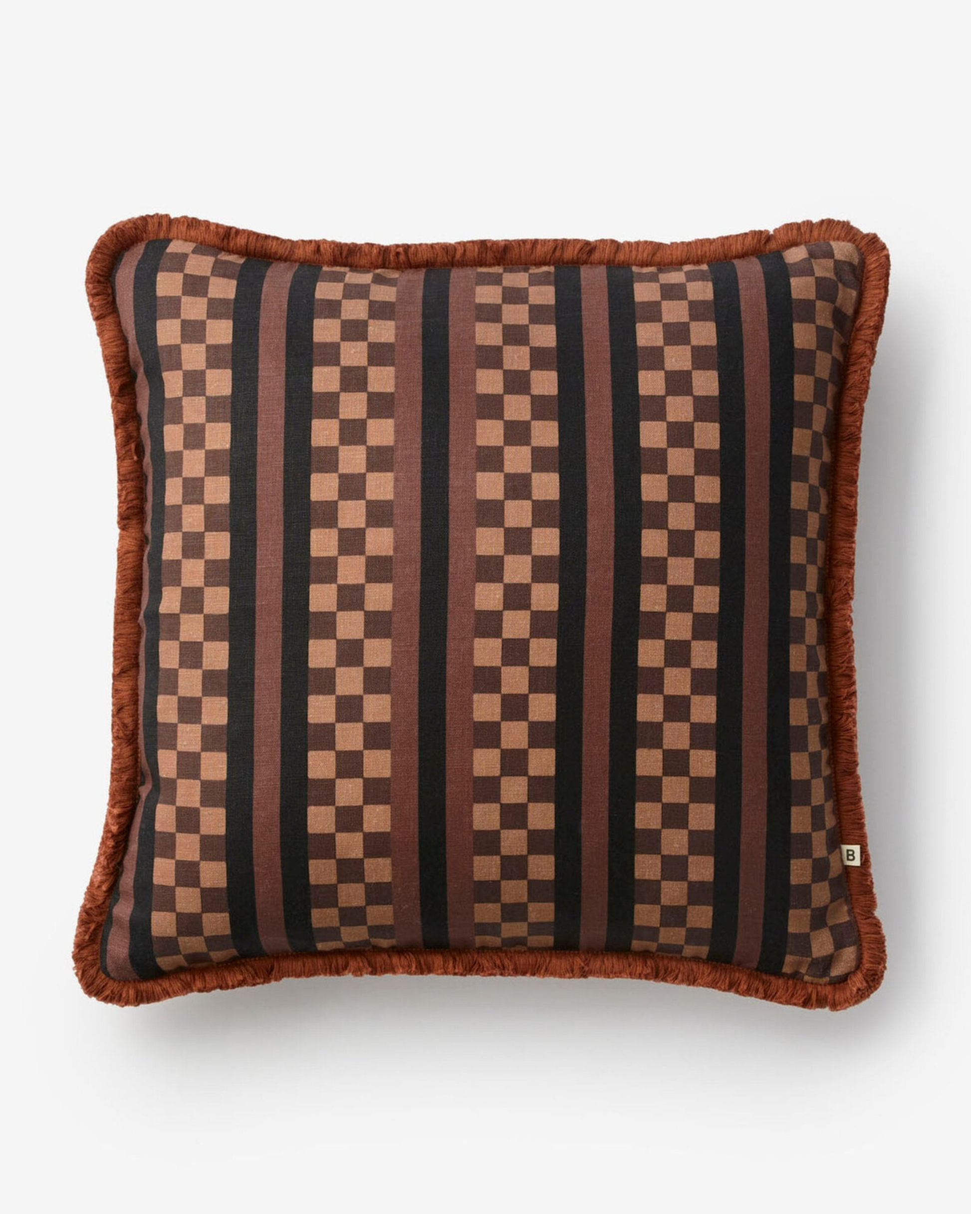 A chocolate linen cushion featuring our Marco Tile geometric design, inspired by traditional ceramics. The deep, earthy brown tone adds richness and balance to any cushion arrangement.