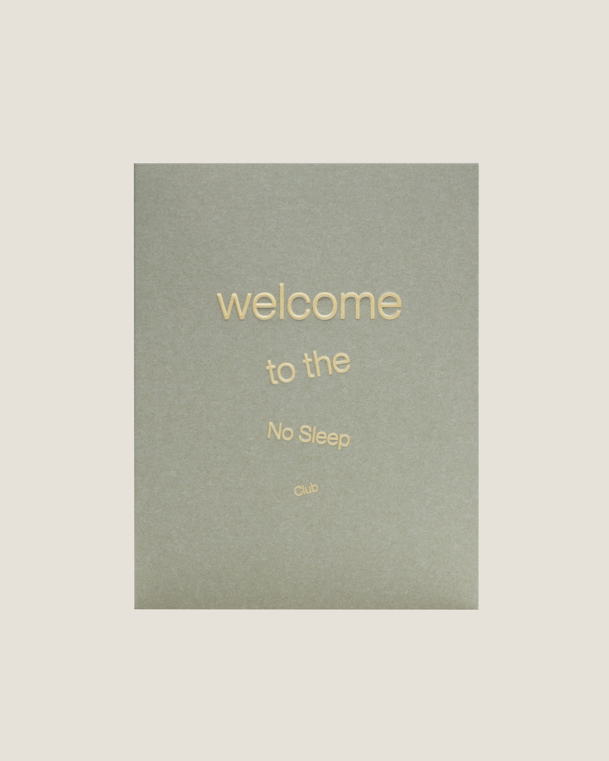 For the new parent who joins The No Sleep Club. This card makes light of new parenthood and the incoming lack of zzz's. Made in Melbourne, the card stock is FSC certified and 350gsm. Design finishes include raised emboss detailing in lemon yellow with a clear foil finish. Blank inside and includes a semi-translucent envelope.