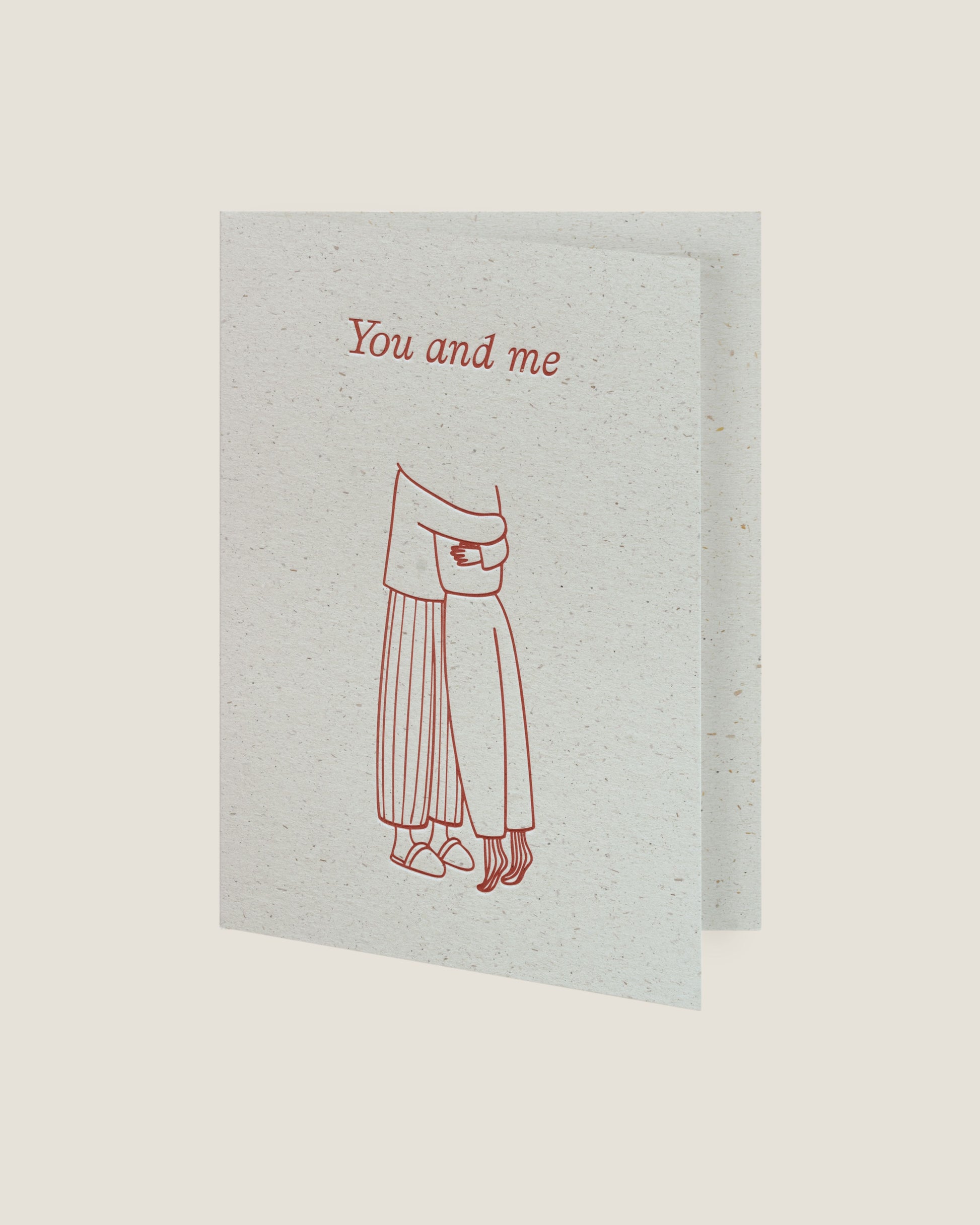 When the best thing to hold on to in life is each other. Weighty grey speckled stock with maroon debossed copy. Tippy-toe illustration by Australian artist and friend, Amy Colla.