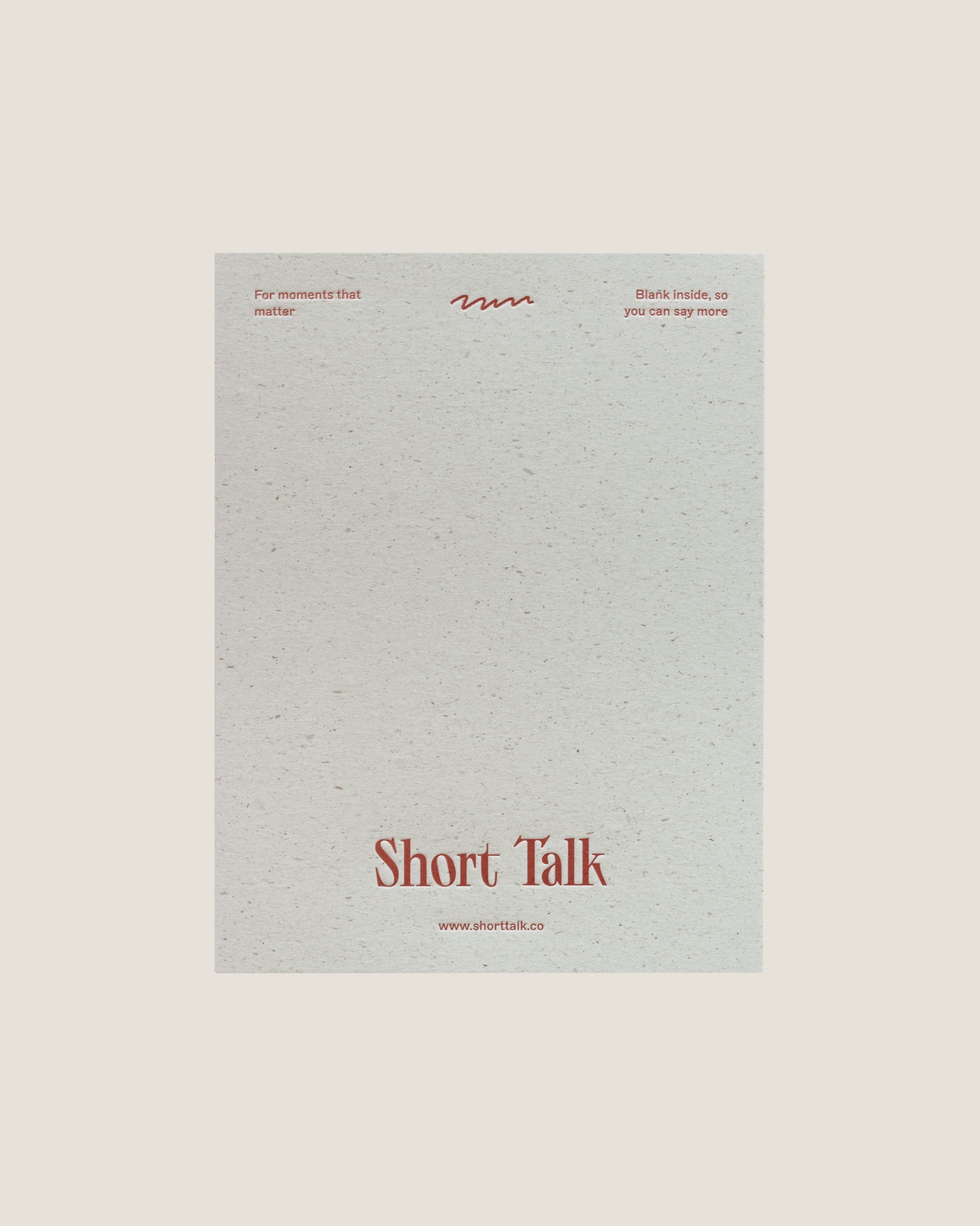Short Talk cards measure 5.5inches x 4.25inches and come with a premium paper vellum envelope meaning they are slightly sheer so you can see through to the word detailing on the front of the card.