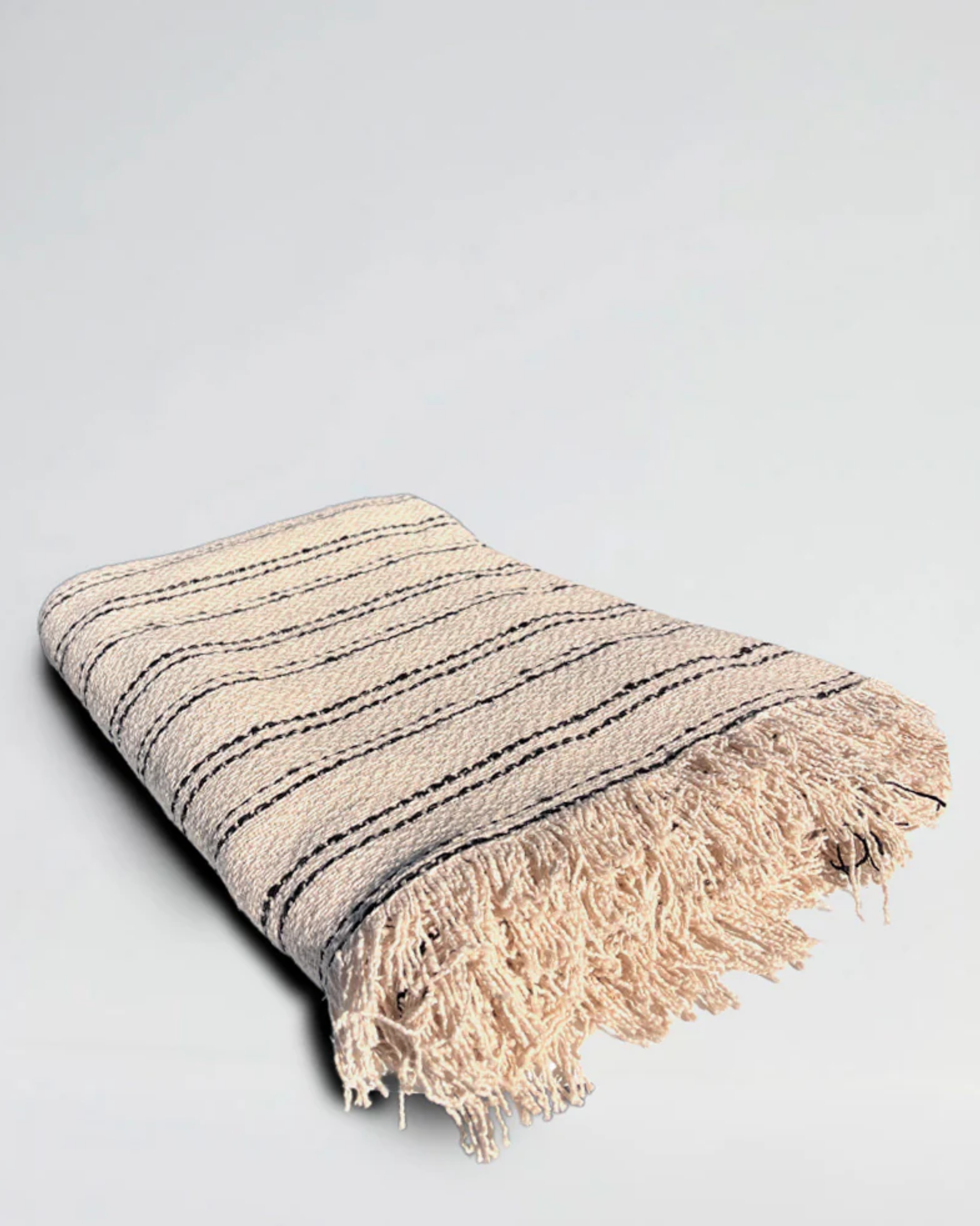 A refined essential for layered living. The Alba throw infuses Mediterranean style into your space with its neutral-toned base and woven black vertical stripes. A clean, linear look that complements both contemporary and relaxed interiors.