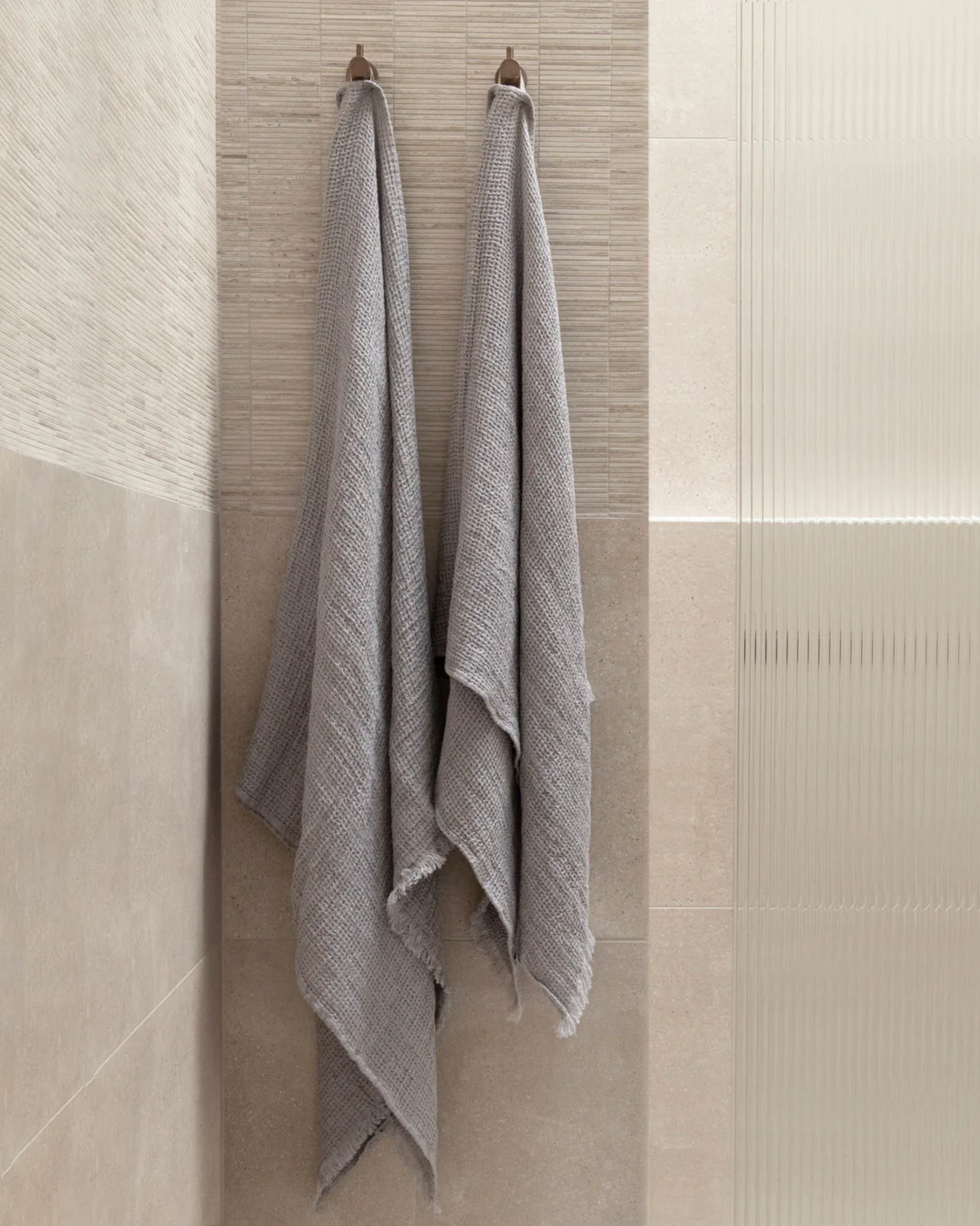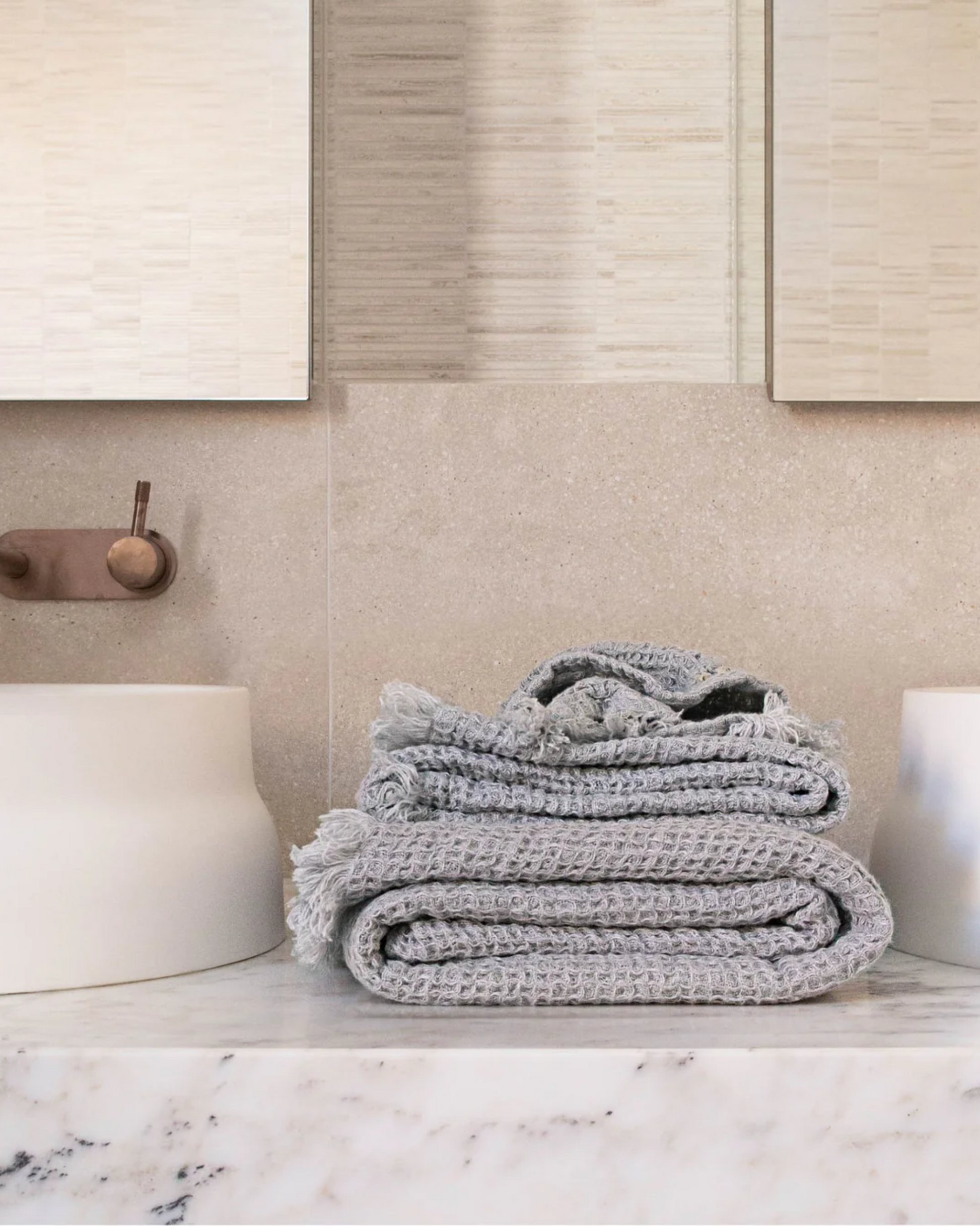 Our classic dense linen waffle towel design is available in a muted colour palette that will elevate your everyday bathroom style.