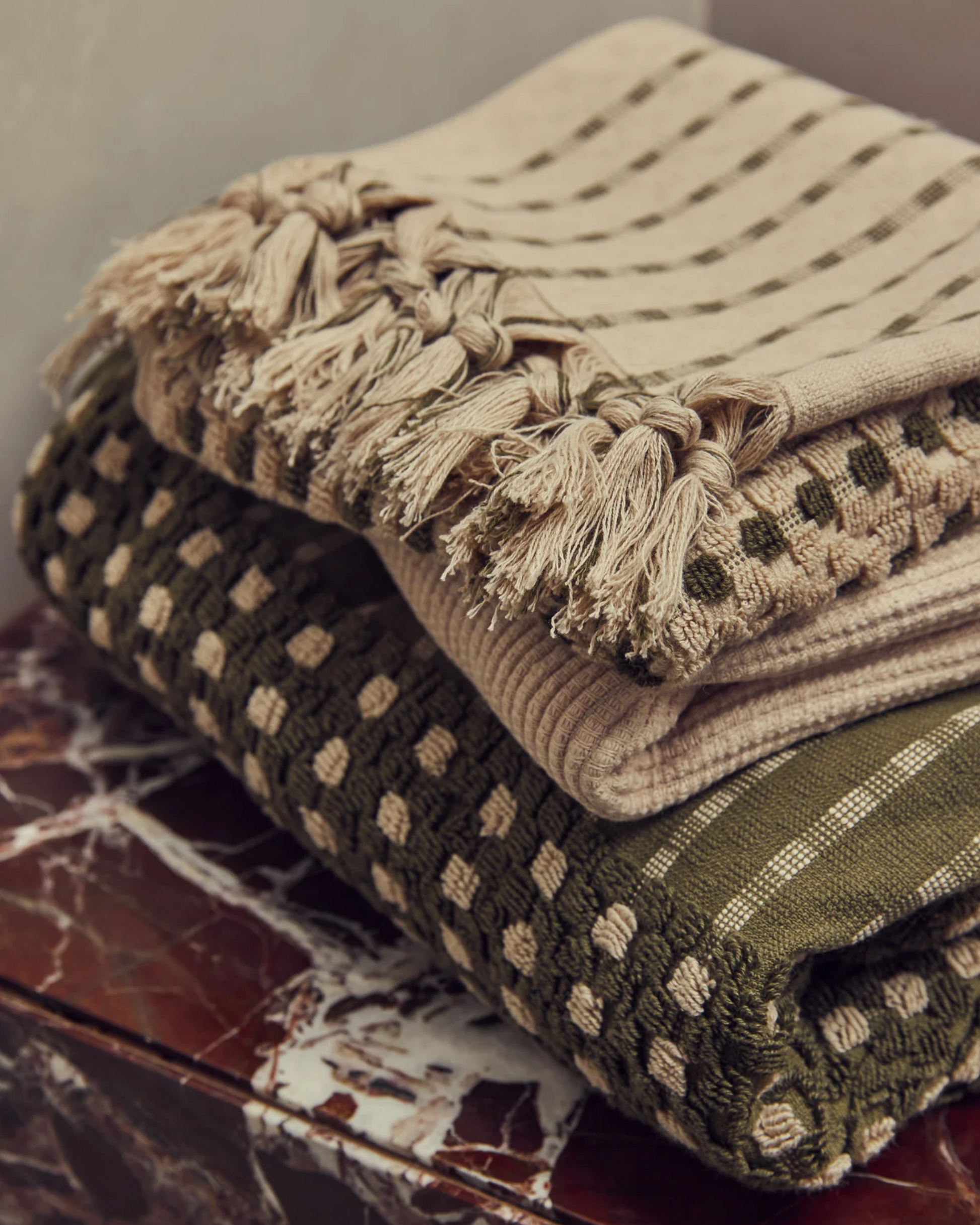 CHICKPEA BATH SHEET - OLIVE/STONE