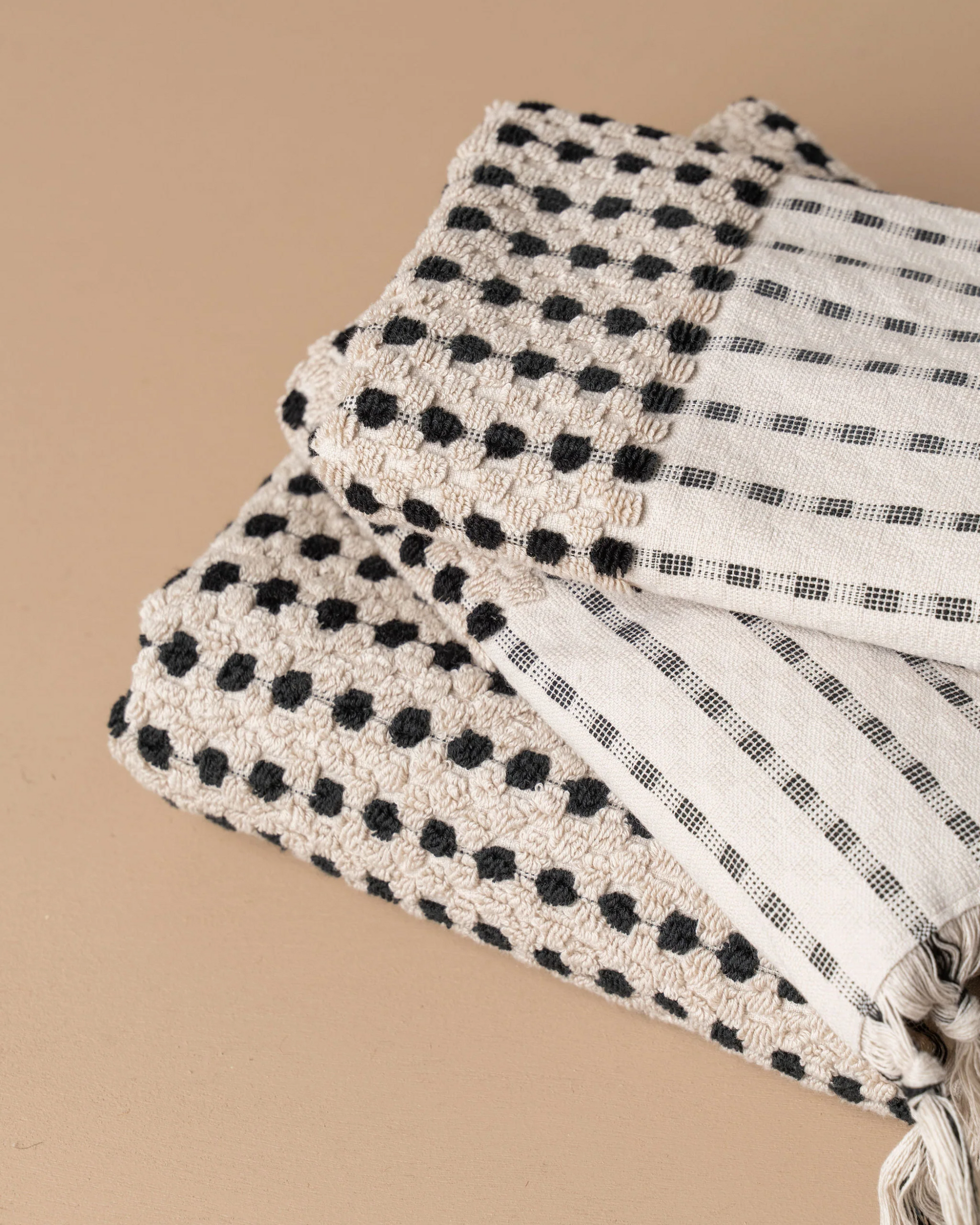 CHICKPEA HAND TOWEL - STONE/BLACK