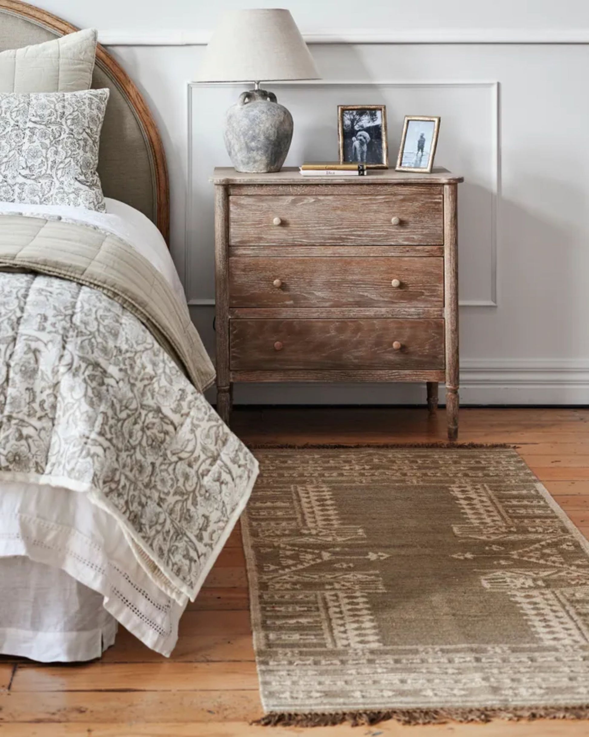 The Sundara Rug effortlessly blends traditional motif elements into a pared back contempered style. Crafted by hand in wool and cotton in rich natural colours, a welcome addition to any room.